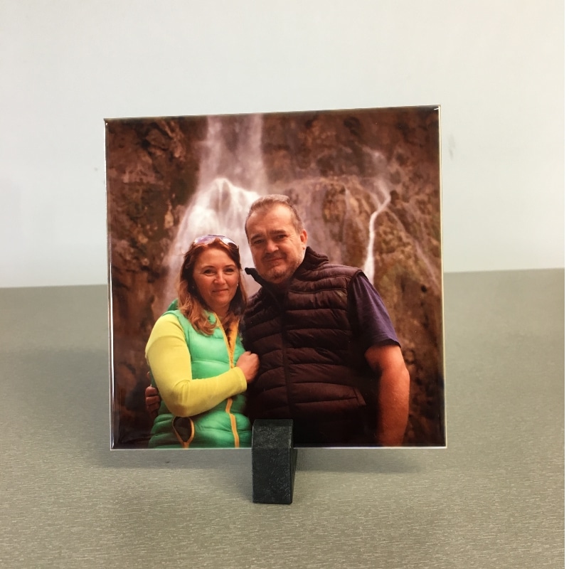 Anyag: Szublimációs bevonattal ellátott csempe, amely lehetővé teszi a fotóminőségű nyomtatást.