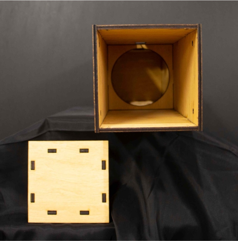 Minőségi anyaghasználat: A doboz vékony, préselt falapokból készül, amelyet lézergravírozó géppel méretre és formára vágnak, biztosítva a tartósságot és a precíz kidolgozást .