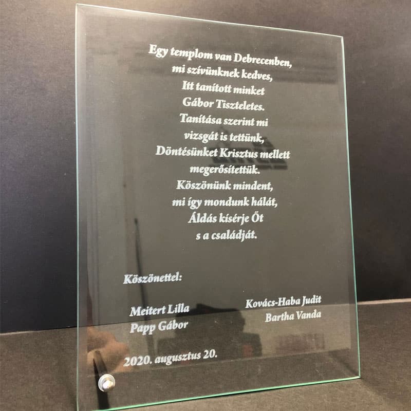 Lepd meg szeretteidet egy igazán különleges és személyre szabott ajándékkal! A közepes méretű, gravírozható üveg plakettünk ideális választás, ha maradandó emléket szeretnél átadni bármilyen alkalomra.