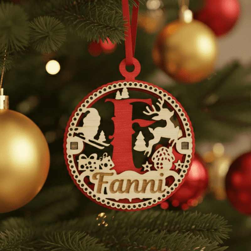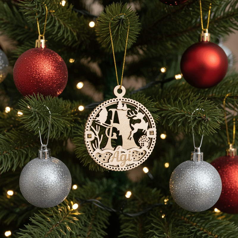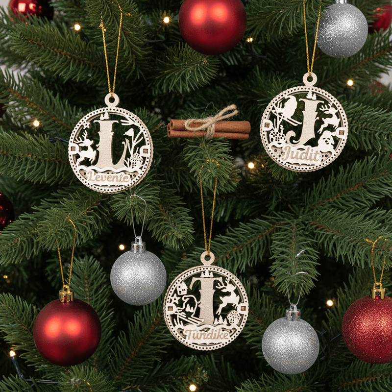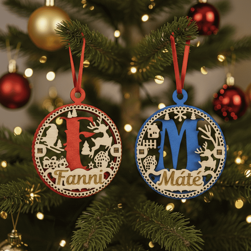 Egyedi neves karácsonyfadísz – gravírozott fa ajándék
